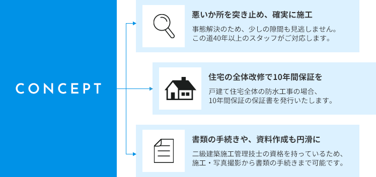 防水工事・シーリング工事の年間施工件数は180件。今までの技術と知識を活用し、スムーズに施工を行います。